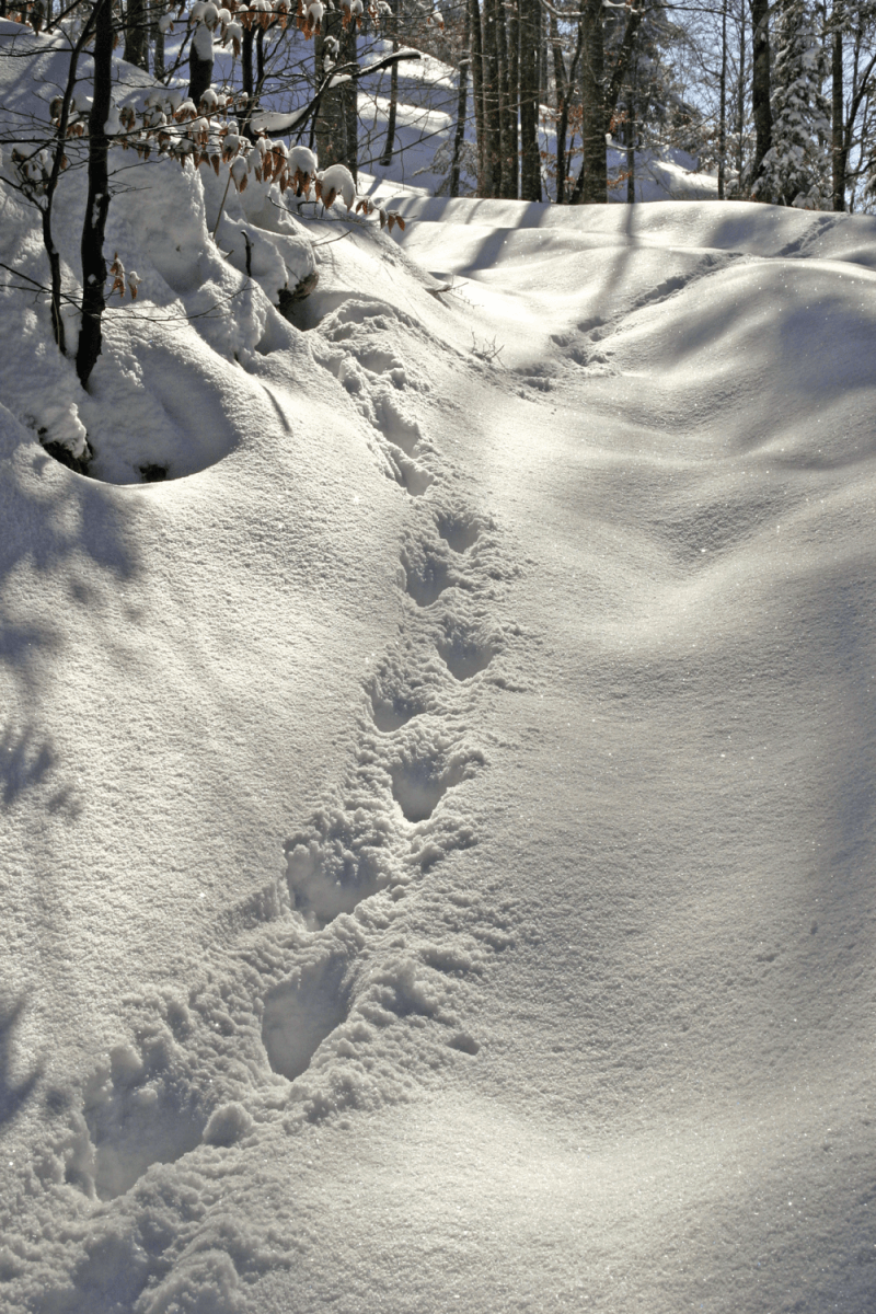 Dès les premières neiges d'octobre, je pars à sa recherche. Suivre ses traces dans la poudreuse est le moyen idéal pour connaître les passages habituels de l’animal, pour découvrir des restes de proies et des tanières utilisées comme gîte diurne. Il devient alors possible d’anticiper ses déplacements et de pouvoir le surprendre à l’affût, toujours avec le souci de ne pas le déranger.