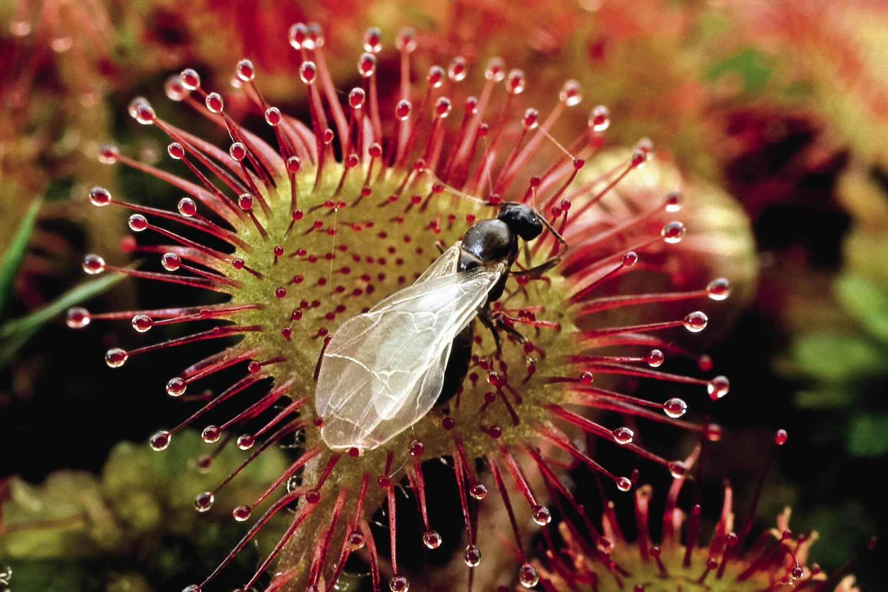 Chez le droséra, tout contact avec la tête d’un tentacule provoque une excitation électrique. Si cette stimulation est suffisamment forte ou qu’elle se répète, un potentiel d’action se propage dans toute la feuille de la même manière que chez des cellules sensorielles animales. Ce signal fait d’abord converger les tentacules vers le centre, puis il déforme la feuille tout entière pour envelopper la victime. Entre-temps, la digestion commence.