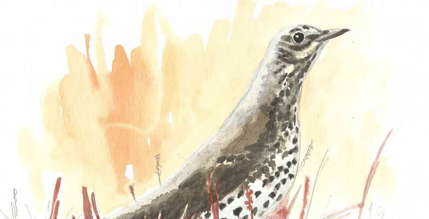 Qu'elle semble stressée cette grive musicienne réfugiée au jardin ! Et pour cause, des coups de feu claquent de toute part. On en veut à sa vie.
