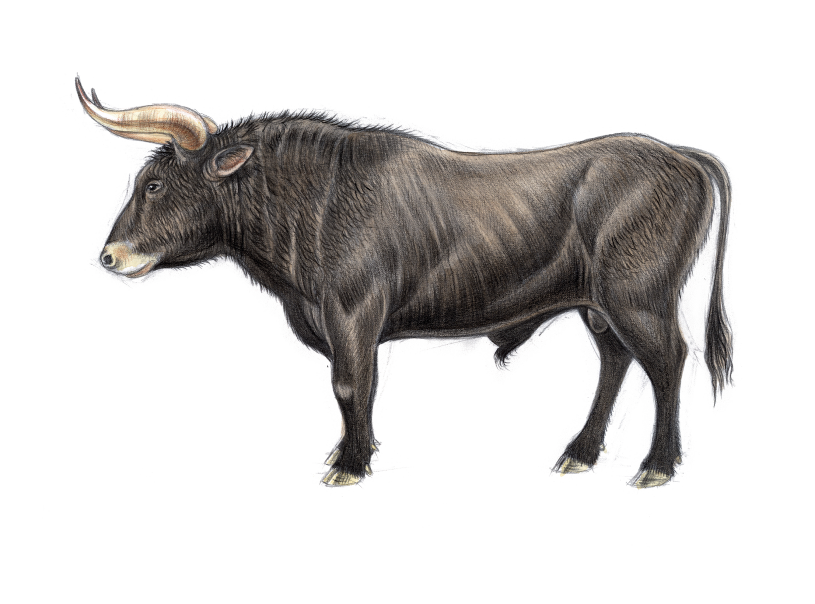 Icône de l’art pariétal, l’aurochs a été beaucoup chassé au Paléolithique par les Néandertaliens puis par les humains modernes. Le bovidé pouvait atteindre 1,8 m au garrot et peser 1 t. Il vivait en troupeau entre forêts, clairières et prairies. Cette vache primitive joue un rôle fondamental à la toute fin du Paléolithique supérieur. D’animal sauvage peint sur les parois des grottes d’Europe, elle devient l’objet d’une domestication à grande échelle qui aurait débuté il y a 10 000 ans au Proche-Orient. Au XIIIe siècle, la forme sauvage n’existe plus qu’en Europe de l’Est, où elle s’éteindra 400 ans plus tard.