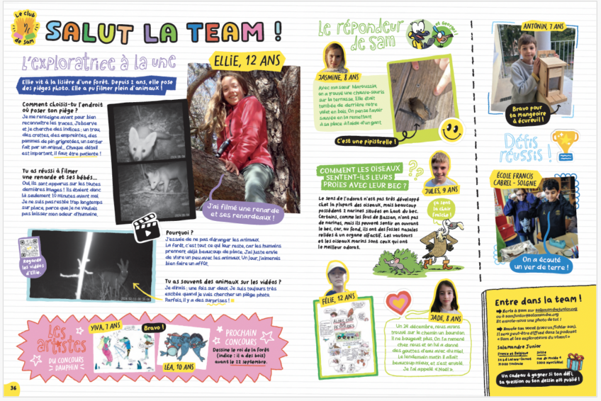 • Plus d’interactivité avec le club “La team de Sam” : les enfants partagent leurs blagues, questions, témoignages et dessins.