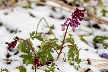 Des troupes de pinsons et de grives cherchent leur pitance sur les herbages qui dominent la rivière. De là-haut, le panorama sur la vallée est saisissant. Sur ces pentes, l’agriculture moderne a peu modifié le paysage. Haies, bosquets champêtres et vergers à hautes-tiges apportent aux lieux un charme appréciable et d’innombrables habitats pour une flore et une faune variées. Des milliers de fleurs blanches dans le fond d’un petit vallon humide attirent notre attention. Les nivéoles de printemps sont en pleine floraison. Quelques centaines de mètres plus haut, nous retrouvons la neige. L’agriculteur du coin nous confie apercevoir parfois le lynx. Aurons-nous la chance de croiser sa trace ?