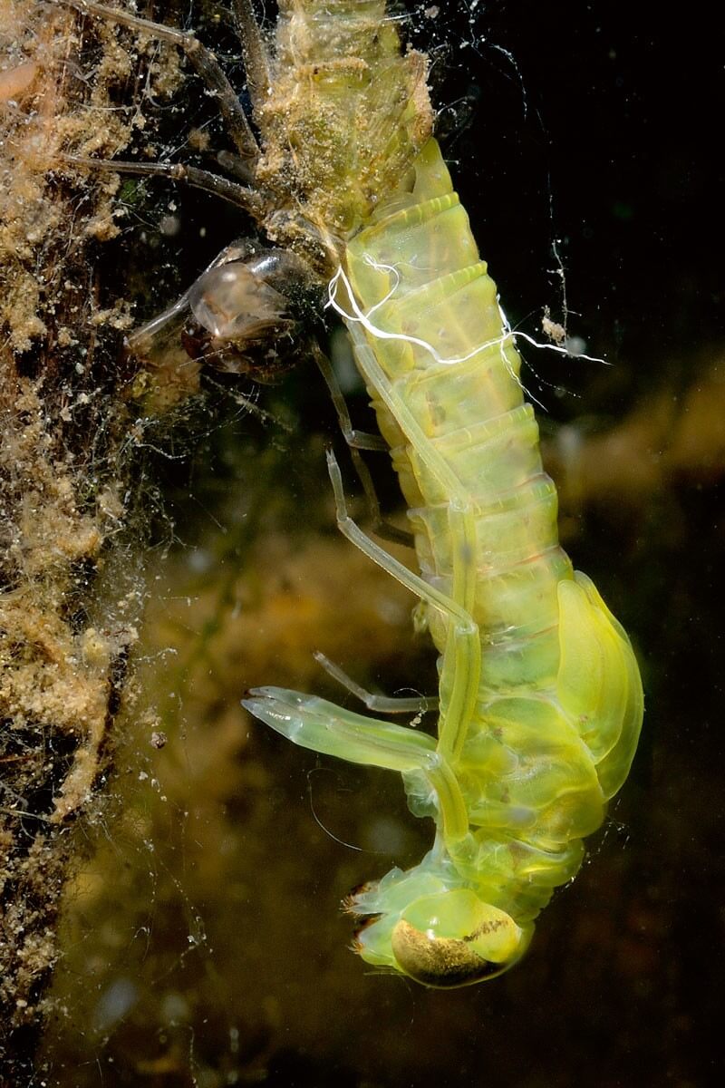 Au cours de cette vie trépidante, les larves grandissent et modifient régulièrement leur apparence. Elles passent d'une taille minuscule de 0,2 cm pour la prolarve à 5,5 cm pour une aeschne prête à émerger. Lors des derniers stades avant l'émergence se développent les organes qui seront nécessaires à la vie aérienne : ailes et organes respiratoires. S'extraire périodiquement de sa vieille cuticule permet aussi de se débarrasser des algues, des protozoaires et autres minuscules bivalves qui se fixent sur la peau et peuvent parfois entraver locomotion et respiration.