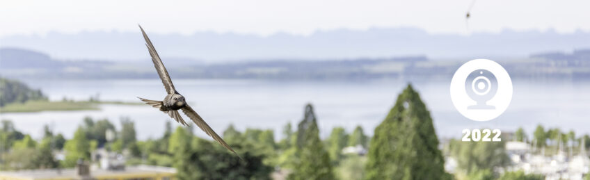 25 avril 2022 – Première observation de martinets noirs de ce printemps dans le ciel de Saint-Blaise! Un groupe d'une dizaine d'individus survole le bord du lac en quête d'insectes à se mettre dans le bec. Les nichoirs de la colonie sont ouverts et la webcam du couple Bise & Azur est allumée. A quand le retour au bercail ?