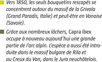 En France, les deux derniers bouquetins de la région du Mont-Blanc sont tirés. L’ongulé ne subsiste probablement plus qu’au Grand Paradis et peut-être en très petit nombre en Vanoise.