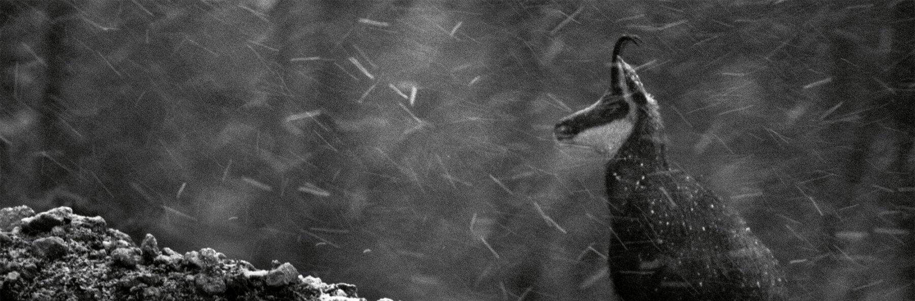 “Assailli par la furie des éléments, le chamois demeure impassible dans la tourmente.
