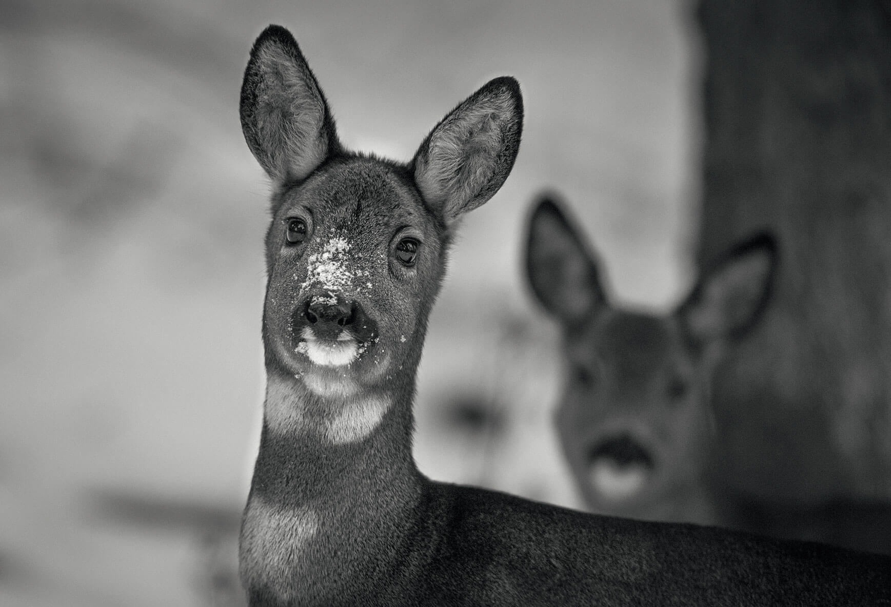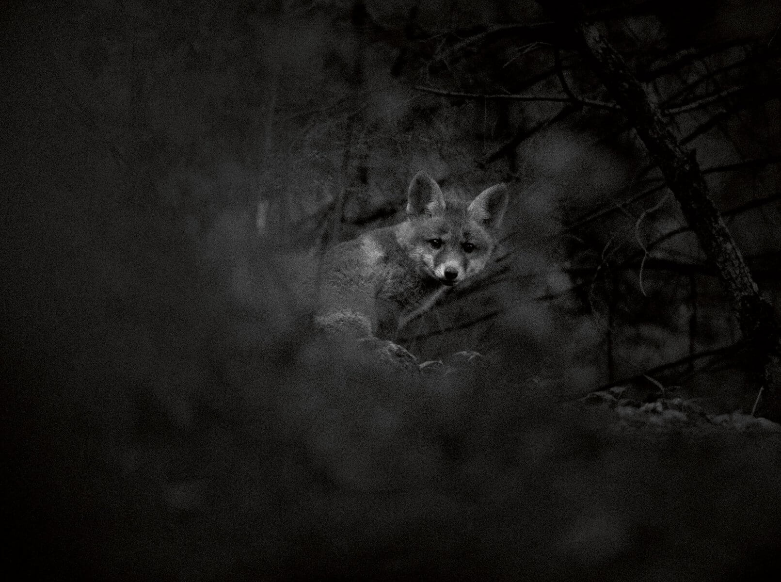 Pour ne pas gêner la vie nocturne de la faune, Neil Villard a choisi une démarche particulière. Pas de flash, pas de lampe torche ni d’éclairage infrarouge : ce photographe puriste utilise uniquement la lumière naturelle. Parfois, la pleine lune ou la blancheur de la neige lui donnent un coup de main. Neil a su faire de ces contraintes techniques un atout esthétique.