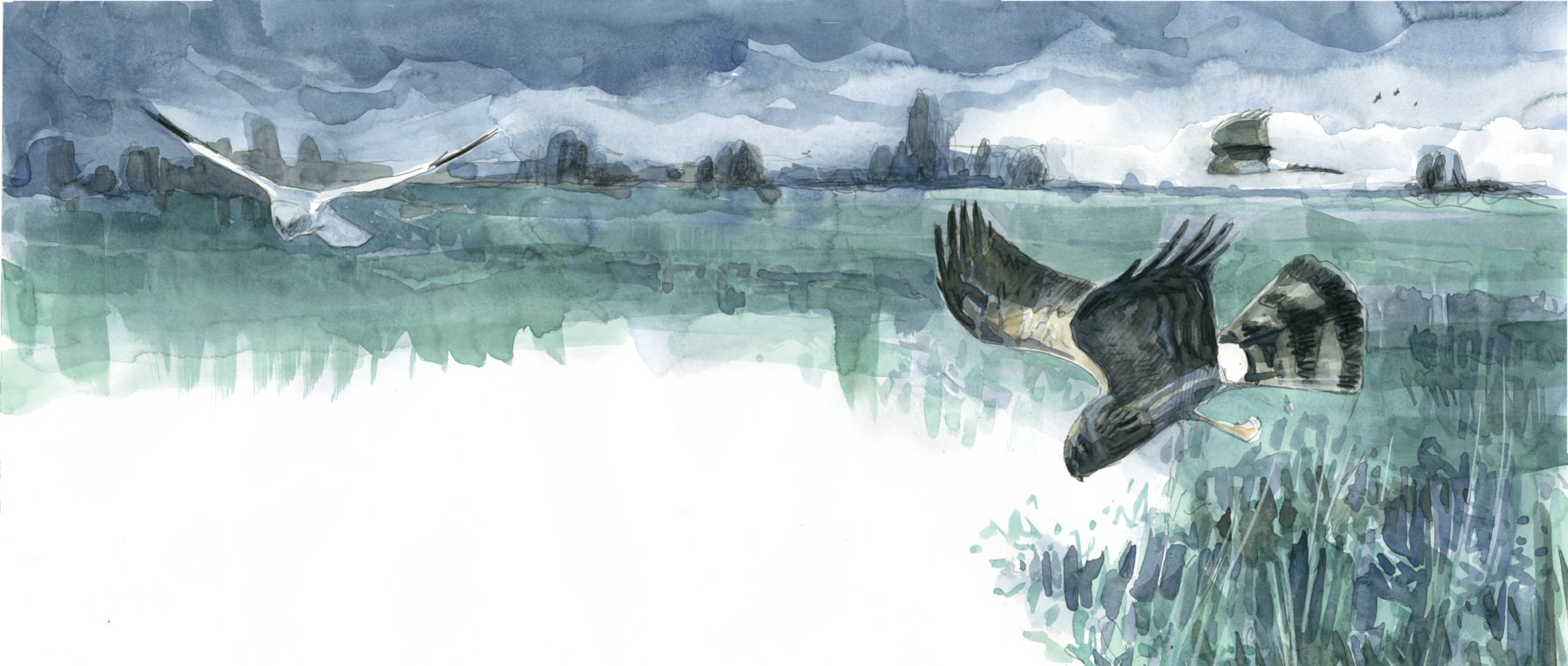 Les busards sont un groupe particulier de la famille des rapaces diurnes. Trois espèces se reproduisent en Europe de l’Ouest : le busard cendré, migrateur qui passe l’hiver en Afrique, les busards des roseaux et Saint-Martin, migrateurs partiels. Le passage du rare busard pâle, originaire de l’Est, est de plus en plus régulier dans nos régions.