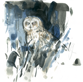 Lièvre et faucon émerillon viennent eux aussi animer les fins de journée dans le précieux champ. Je profite même de deux rencontres avec le rare hibou des marais.