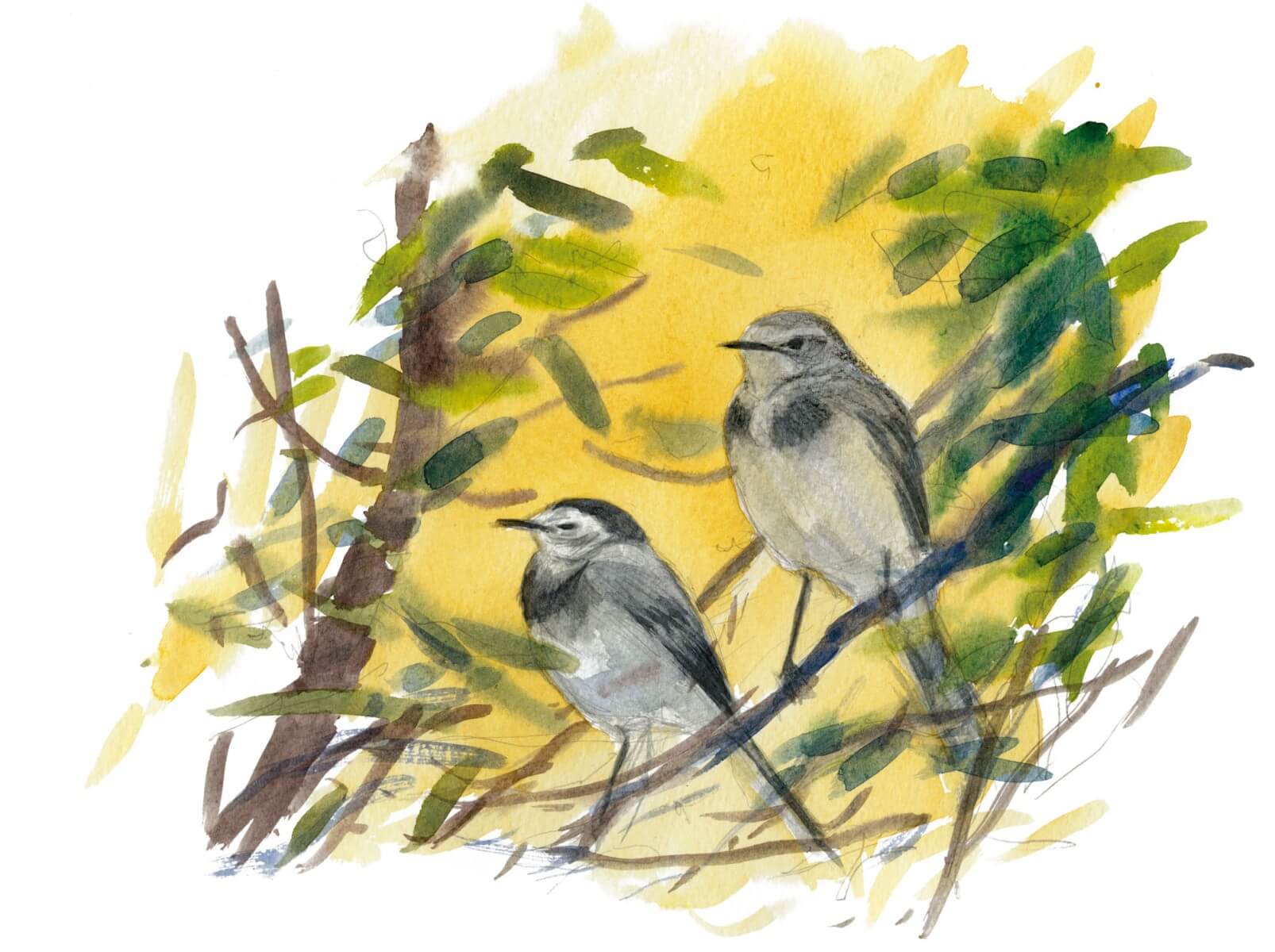« Tssli-vit... tsiwic... ». Sur le faîte du toit, ces cris familiers signent la présence de l'élégante bergeronnette grise. Une scène commune, quoique souvent peu remarquée. Notre passereau masqué de blanc est en effet moins illustre que le rougegorge ou la tourterelle turque.