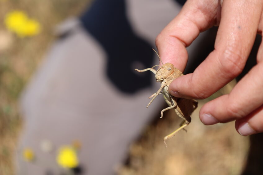 Ce matin du 11 juin, le véhicule du Conservatoire d’espaces naturels de Provence-Alpes-Côte d’Azur (CEN PACA) est remué par le sol caillouteux. Au volant, Camilla Crifò, coordinatrice du projet LIFE SOS Criquet de Crau, rappelle l’objectif de l’opération : « Nous allons chercher les criquets en marchant côte à côte tous les trois dans un périmètre de 10 ha. » Le terrain militaire abrite un coussoul – nom donné à l’habitat semi-aride de la Crau, recouvert à 70 % de galets – qui accueille une des trois dernières populations de criquets. Ce dodu orthoptère de 4 cm est endémique de la localité éponyme. « Dès qu’un individu est détecté, on vérifie s’il est marqué. Si ce n’est pas le cas, on note son sexe et diverses informations puis on inscrit un numéro au feutre sur son dos », précise la chercheuse en poste ici depuis quelques mois.