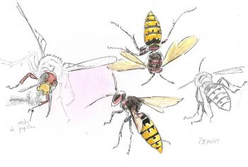 L'ambiance sonore est sans équivoque, ça bourdonne sérieux ! J'aime cet insecte puissant et pacifique, taillé comme une machine. Je redoute par contre l'arrivée de son lointain cousin le frelon asiatique, signalé seulement depuis cet été 2018 dans le Jura français dans sa conquête du Grand Est.