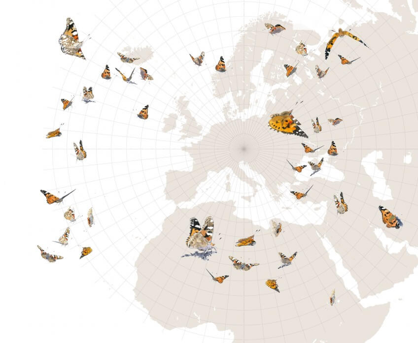 En 1951, dans son étude sur les papillons de Suisse, l’entomologiste E. de Bros s’interroge. « Chose curieuse, alors qu’on a déjà observé d’innombrables fois la vanesse des chardons en route vers le nord au printemps, on ne l’a vue qu’extrêmement rarement en route vers le sud en automne. » La technologie radar a tout récemment révélé l’impensable : les belles-dames attendent des vents favorables qui les poussent vers le sud, à haute altitude et à grande vitesse. Et cela, pas seulement jusqu’en Afrique du Nord comme on l’a longtemps pensé, mais aussi au-delà du Sahara.