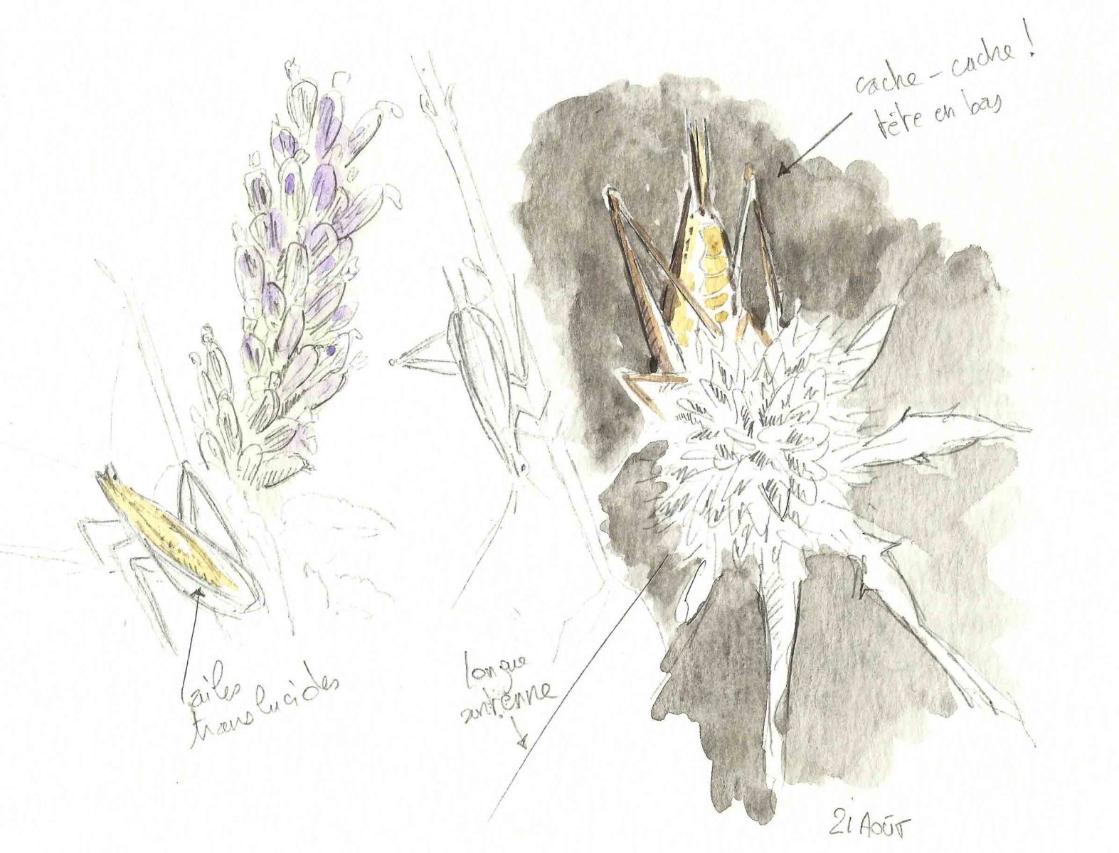 Canicule et sécheresse connotent négativement cette fin d'été. Pourtant, qu'il est agréable de s'éterniser sur la terrasse pour profiter de la douceur. A quelques mètres de là, tel un musicien d'ambiance dans un restaurant, un insecte virtuose joue l'hymne estival depuis le bouquet de lavande. Un grillon d'Italie ! En y prêtant attention, j'en dénombre au moins quatre dans les alentours. Un quator presque assourdissant et pourtant invisible. Le défi sympa à cette saison est justement de débusquer ce petit orthoptère terne et as de la cachette.