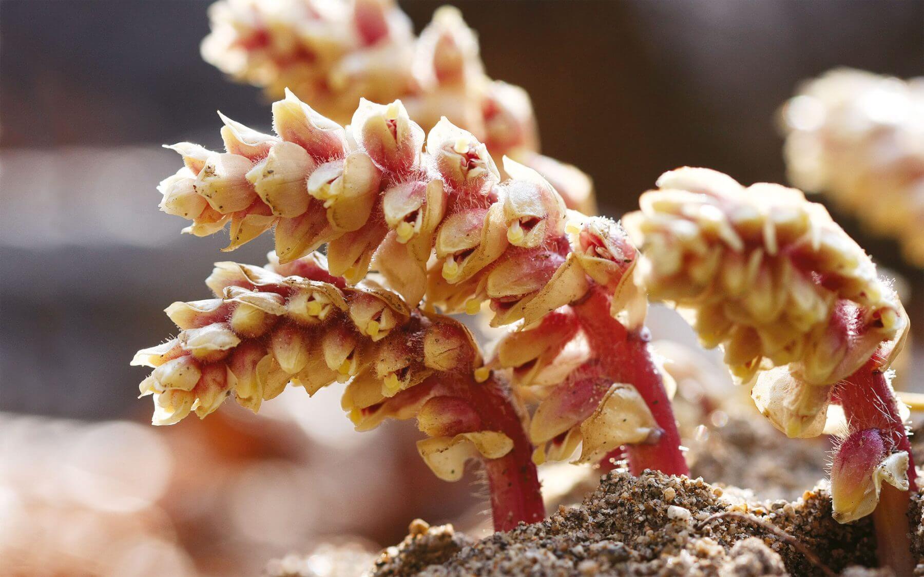 Véritable ovni du sous-bois, la lathrée écailleuse est dépourvue de chlorophylle. Cette plante blanche ou rosée parasite les racines des noisetiers et parfois des peupliers, des aulnes ou des hêtres. La lathrée fleurit et fait mûrir ses fruits durant les courtes semaines où les arbres se réveillent en faisant circuler une sève chargée de réserves nutritives. La tige fugace et ses fleurs tournées dans le même sens ne pèsent pas lourd comparées à la souche invisible qui peut peser plusieurs kilos. Celle-ci grandit pendant une dizaine d’années avant de fleurir pour la première fois.