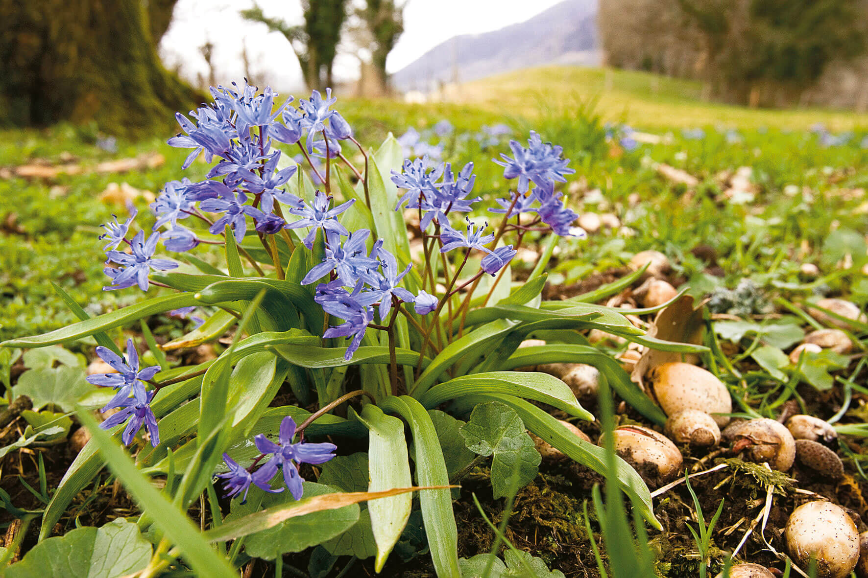 La scille à deux feuilles, c’est la joie du printemps faite fleur. Ses étoiles bleues, rarement blanches, ornent les vallons humides et les abords des rivières. Absente de l’ouest de la France, cette bulbeuse doit son nom aux deux longues feuilles embrassant la base de sa tige. Quant aux graines, chacune contient un appât à fourmis ultra-protéiné. Les ouvrières ramènent ces gourmandises à leur nid puis, une fois que les larves en ont dévoré la partie nutritive, elles les rejettent autour de la fourmilière où elles pourront germer.