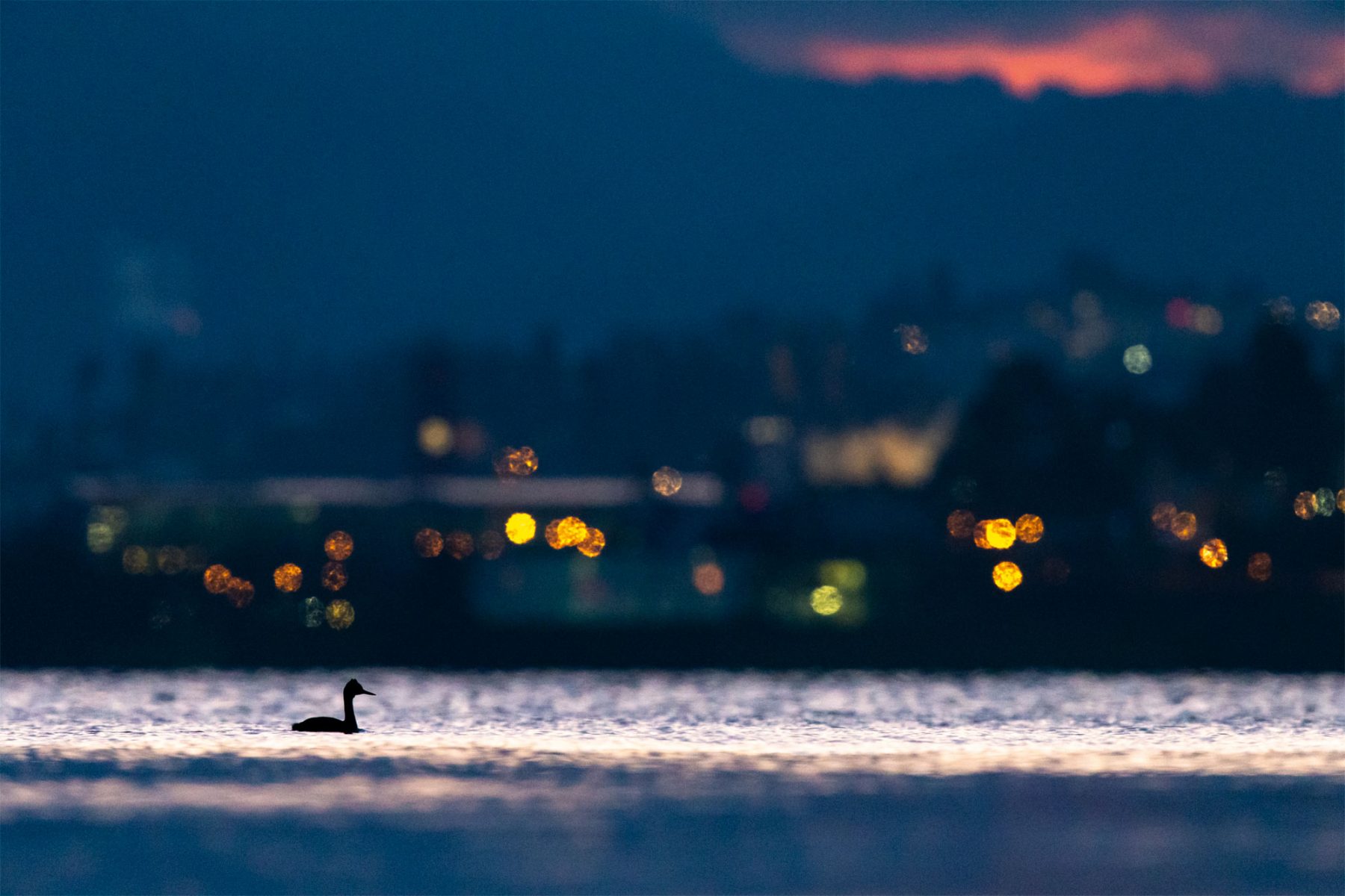 Chaque soir, c’est la même histoire. Le soleil part se coucher derrière les crêtes du Jura et m’abandonne, les pieds dans l’eau, avec un sentiment d’inachevé. Mais si les jours d’automne se raccourcissent, la nuit n’est jamais noire sur les rives du lac de Neuchâtel. Elle invite à jouer les prolongations… Au lieu d’amarrer le radeau que j’utilise pour photographier les oiseaux aquatiques et de rentrer au bercail, je décide de rester.