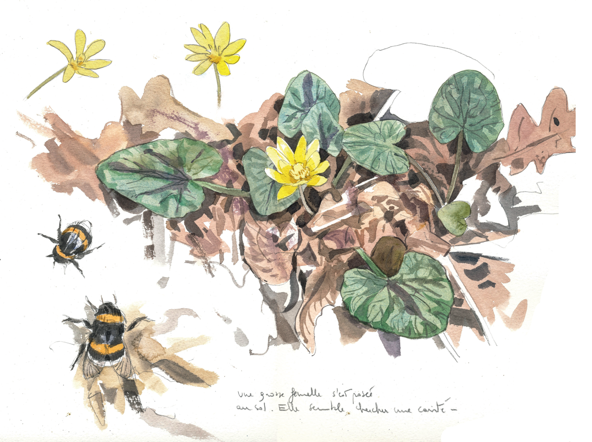 Sous une racine de hêtre, dans une loge sombre au parfum de terre et de mousse, une reine de bourdon s’éveille. Ses antennes frémissent, son thorax frissonne et sa respiration s’intensifie. C’est l’heure. Sa léthargie souterraine a duré plusieurs mois, mais tout son corps résonne à l’appel du printemps : il lui faut regagner l’air libre. Dans le noir complet, elle s’aide de ses mandibules et de ses griffes pour remonter laborieusement jusqu’à la surface. Couvert de poussière, l’insecte se dégage de l’humus pour se hisser sur une feuille morte.