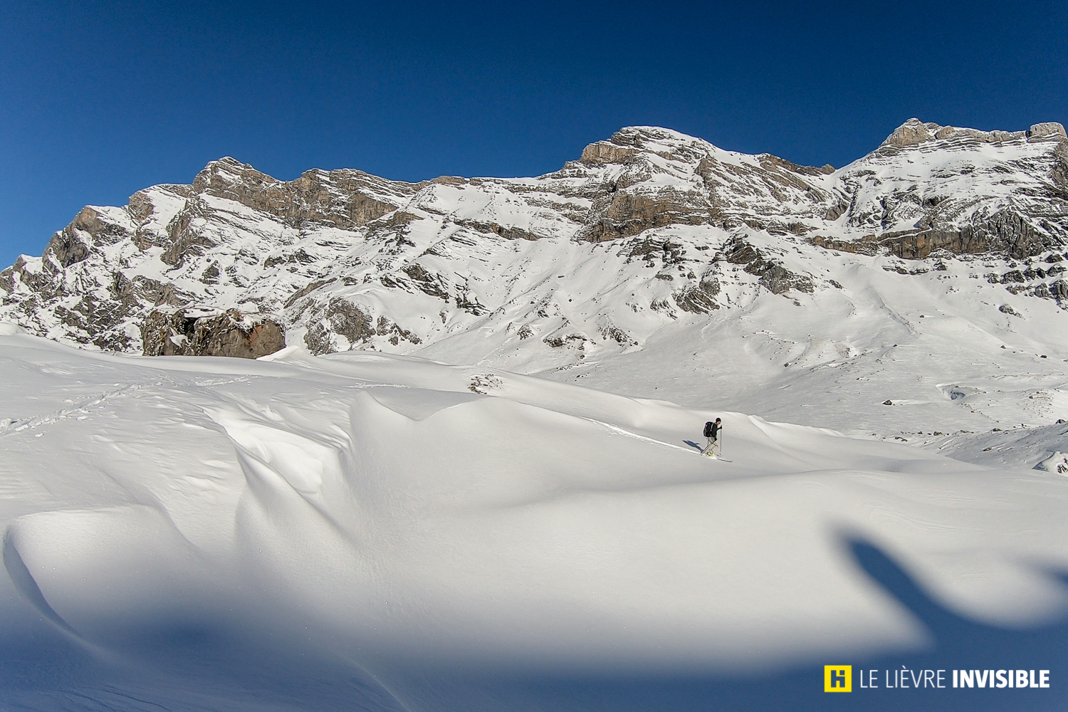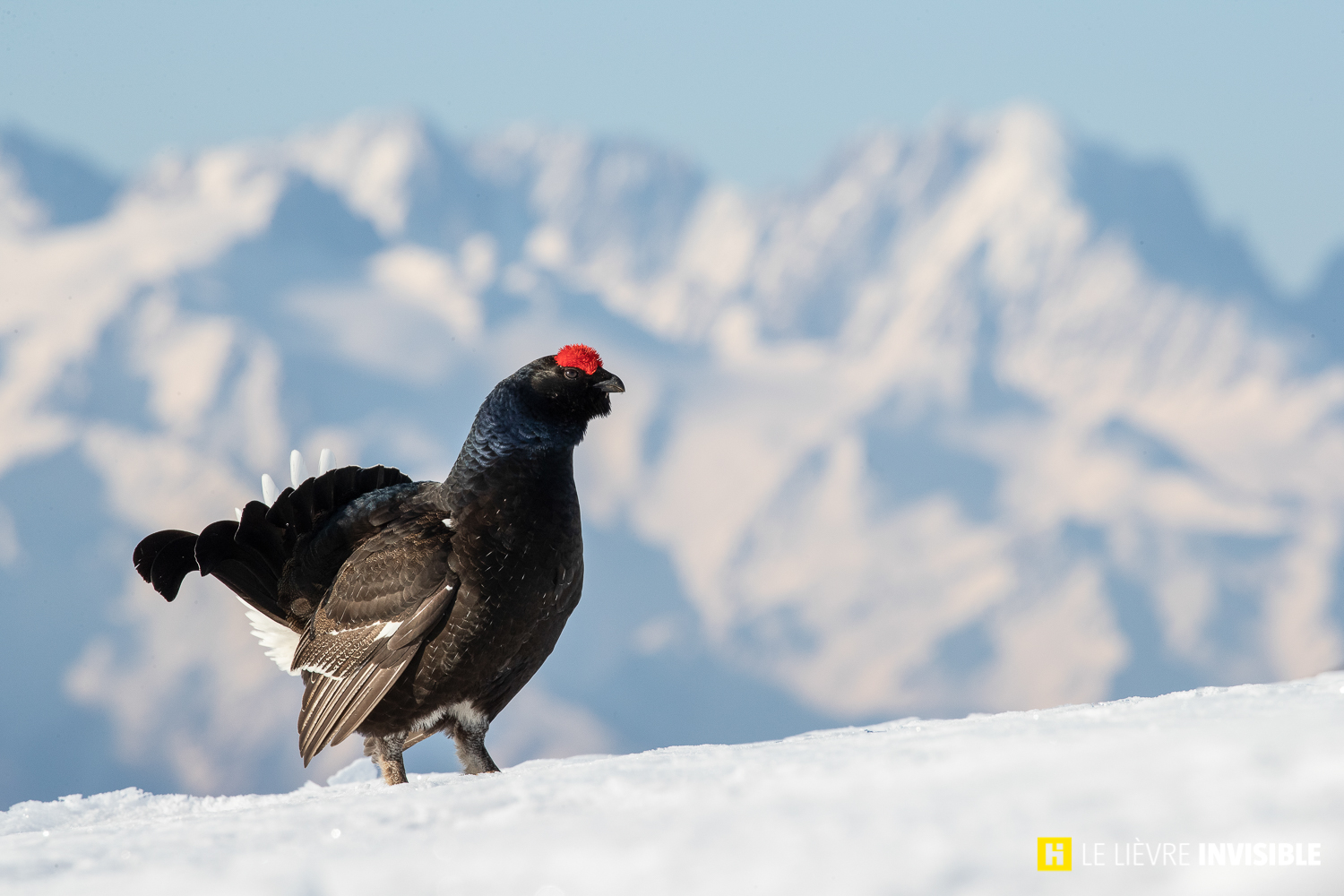 Un aigle passe dans le ciel sans qu’il bronche, confiant dans son camouflage parfait. Après plus d’une heure de face à face, le soleil, la chaleur et la neige qui ramollit nous rappellent qu’il faut déjà descendre. Rendez-vous est déjà pris, à nouveau.