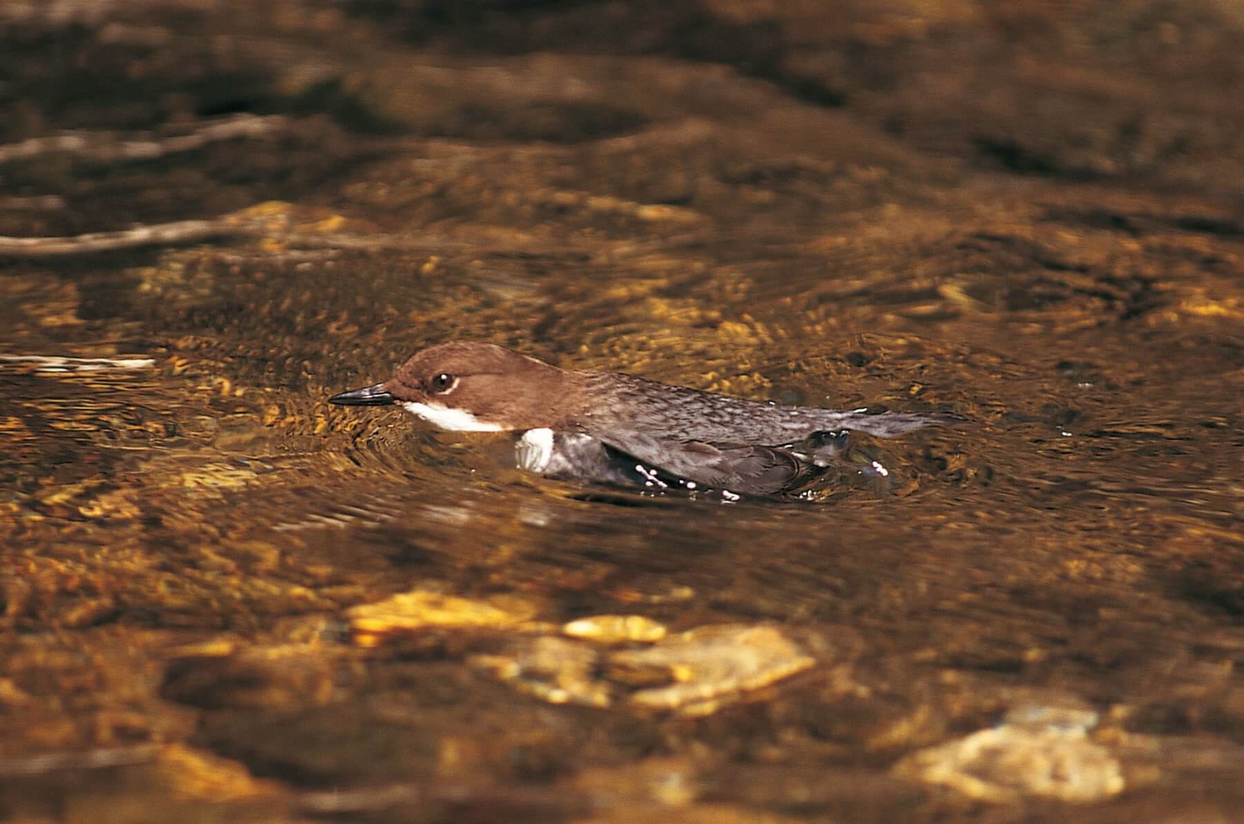 Le cincle plongeur est un champion de l’apnée. Il n’hésite pas à se mouiller des dizaines de fois par jour. Et à remonter, autant de fois, au bout… d’un certain temps, comme une balle de ping-pong.
