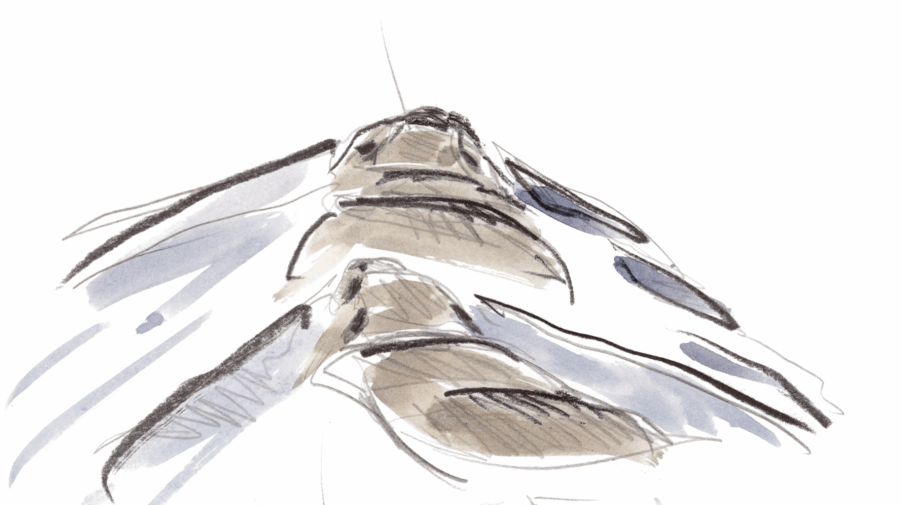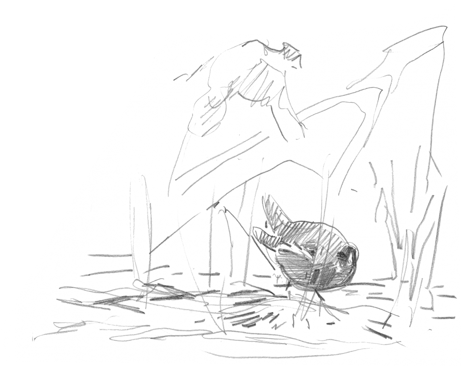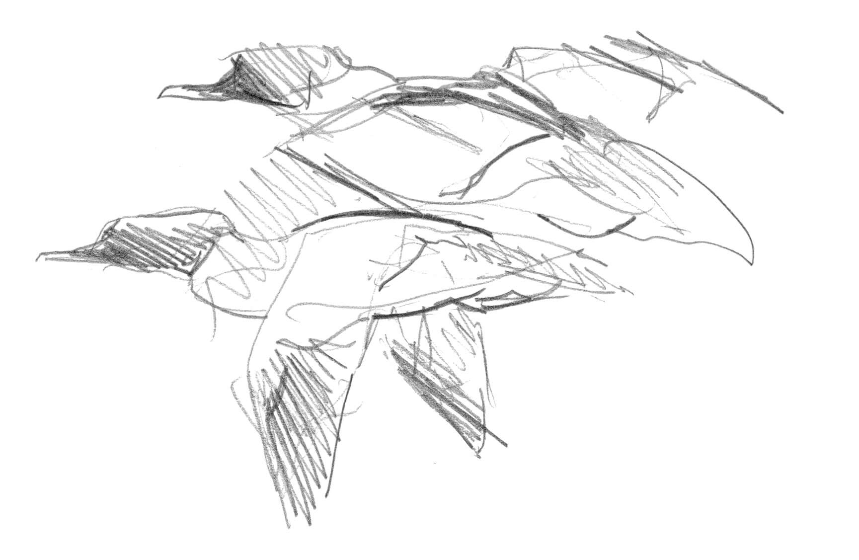 En guise d’épilogue, deux harles bièvres survolent le chantier des castors. De quelques coups d’ailes, les pêcheurs saluent les bûcherons avant de disparaître.