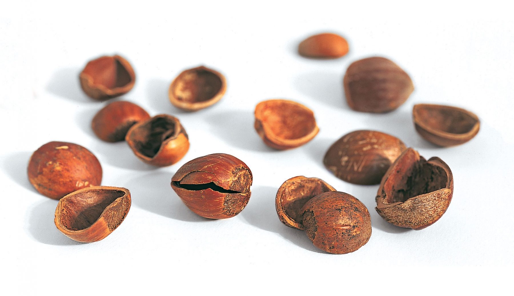 L’écureuil a la dent dure. Avant chaque coup, il inspecte et soupèse le fruit en le faisant pivoter entre ses doigts. Il le jette s’il lui paraît trop léger : inutile en effet de perdre son temps et son énergie sur une coque vide. Si le verdict est positif, l’écureuil tient fermement la noisette entre ses deux mains, pointe tournée vers le haut, et ronge au sommet un petit trou en forme de sillon, juste assez grand pour y insérer ses incisives. Un habile mouvement de levier suffit alors à faire éclater la coque en deux parties.