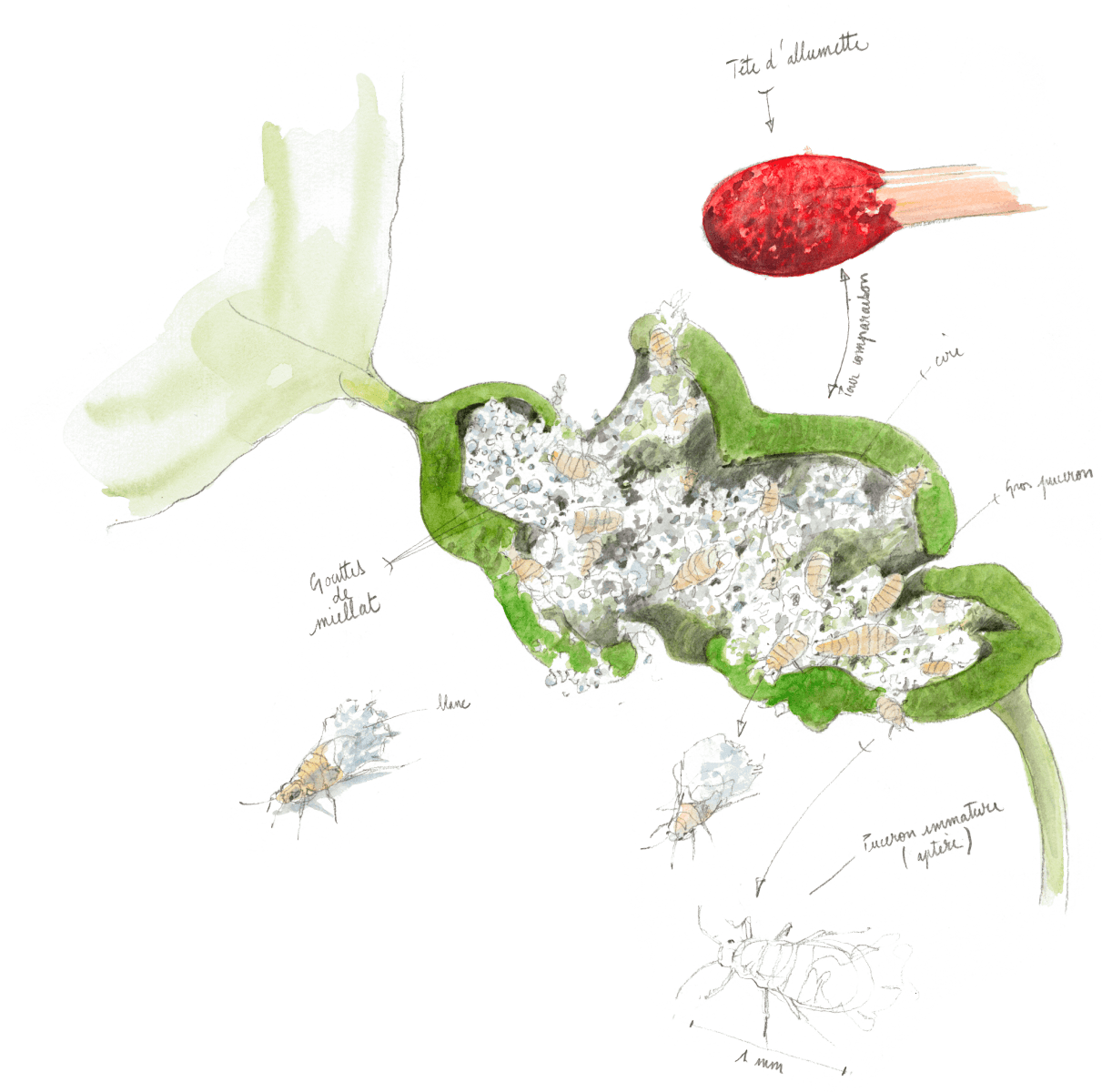 Désormais à l'abri des intempéries et des ennemis dans une cavité végétale, la mère puceronne fonde son peuple. Sans avoir été fécondée par un mâle, elle produit une grande quantité de pucerons asexués, dont des soldats destinées à la protection du royaume.
