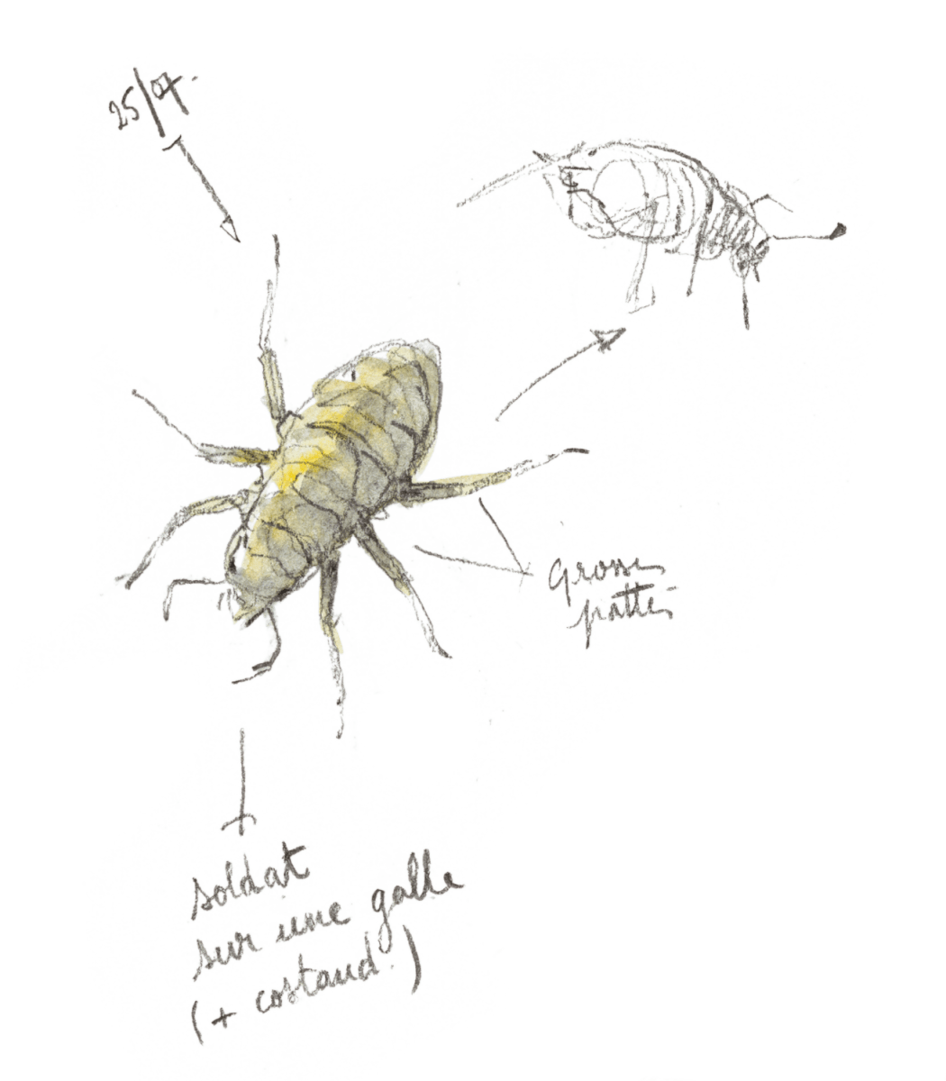 normaux… Ce sont les soldats de la fondatrice qui représentent près de 50% des quelque 500 pucerons contenus dans la galle.