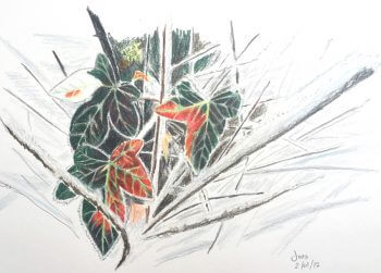 En pénétrant la jungle grise et blanche du sous-bois givré, on découvre un végétal aux couleurs qui résistent au lavage à -4°C. Le lierre fidèle à lui-même.