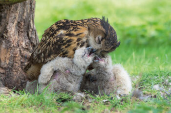 Une telle productivité est tout à fait remarquable pour un prédateur au sommet de la chaîne alimentaire. Le grand-duc doit ce superpouvoir à son éclectisme en matière de proies, un atout qui le met généralement à l’abri de la disette. Le caïnisme – quand un poussin tue son cadet pour survivre – n’existe d’ailleurs pas chez les aigles de la nuit.