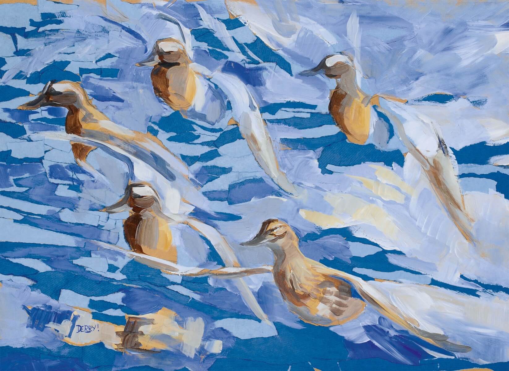 Nick Derry a quitté Birmingham, dans le centre de l'Angleterre, pour s'installer en 2006 en France à Besançon. Dans la capitale franc-comtoise, il enseigne l'anglais, mais passe l’essentiel de son temps à observer les oiseaux et à en dresser des portraits en tout genre. Avec audace, l'artiste trentenaire passe de l'aquarelle au cubisme, touche au fauvisme et à l'impressionnisme, s'épanouit dans le pop art et le surréalisme.