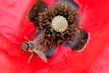 Les abeilles n'ont d'yeux que pour la couleur jaune, synonyme de nectar. Elles sont capables de voir les ultraviolets mais sont aveugles au rouge. Pour les ouvrières, cette couleur n'existe tout simplement pas. Comment se fait-il alors qu'elles soient si attirées par le coquelicot et ses fragiles pétales écarlates ?