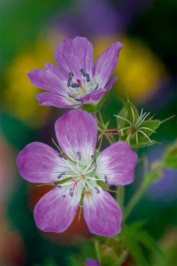 Expertes en matière amoureuse, les fleurs guident les insectes qui se posent sur elles pour la première fois. Les pétales du géranium des prés sont munis de balises d'atterrissage blanches pour canaliser les visiteurs à la source du nectar. Au passage, les étamines déposent leur pollen sur le dos ou les flancs du soupirant ailé. Les digitales présentent des taches marbrées qui conduisent dans leur gorge. Quant à la pulsatille alpine ou à la fleur de fraisier, elles présentent un cœur jaune qui contraste avec des pétales blancs : une cible où l'insecte est invité à glisser sa trompe sans hésiter.
