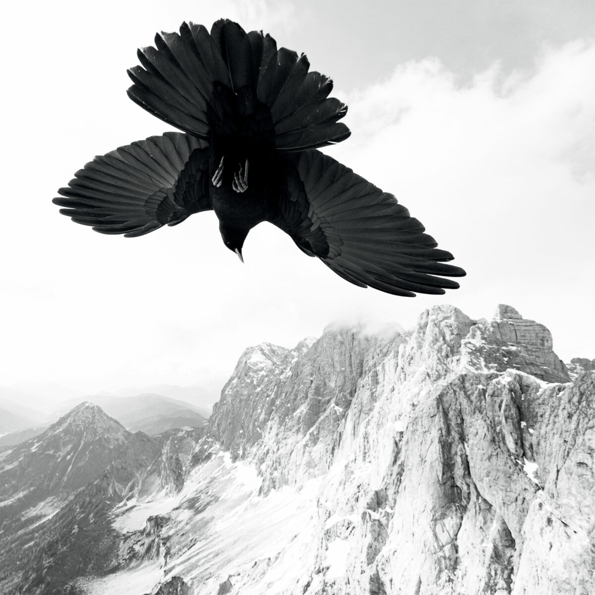 “En montagne, les chocards à bec jaune sont communs autour des sites touristiques, ce qui offre une proximité étonnante. Dans de telles conditions, à la station du Dachstein (Autriche), j’ai pu utiliser un objectif grand angle et prendre cette photo d’un chocard qui s’élevait sans cesse dans les airs.
