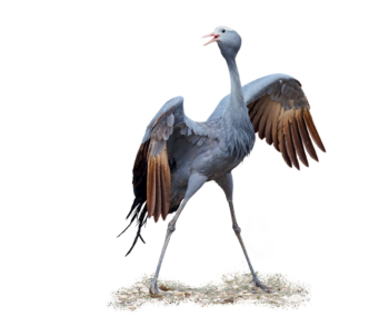 - La plus petite grue. Elle a la particularité de nicher à même le sol sec des steppes eurasiatiques.