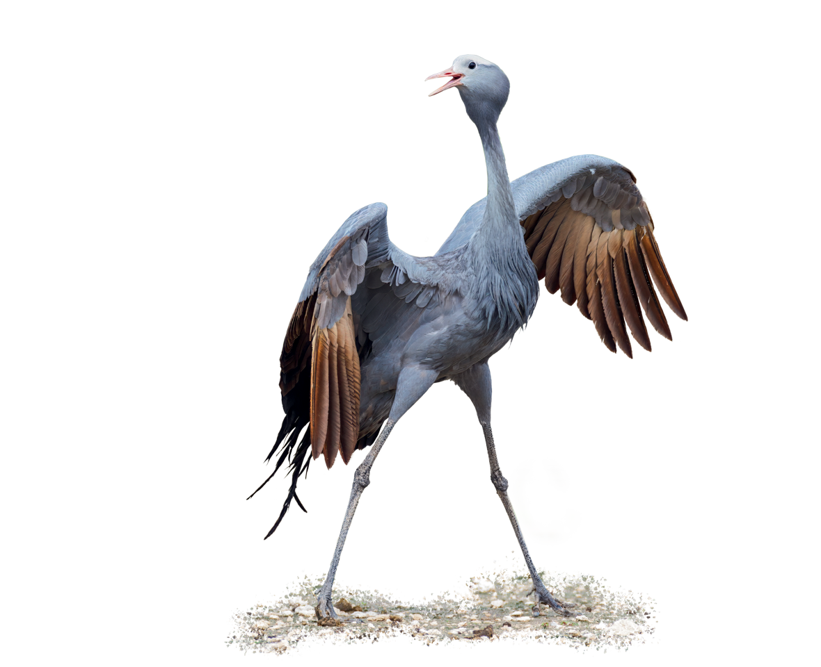 - La plus petite grue. Elle a la particularité de nicher à même le sol sec des steppes eurasiatiques.