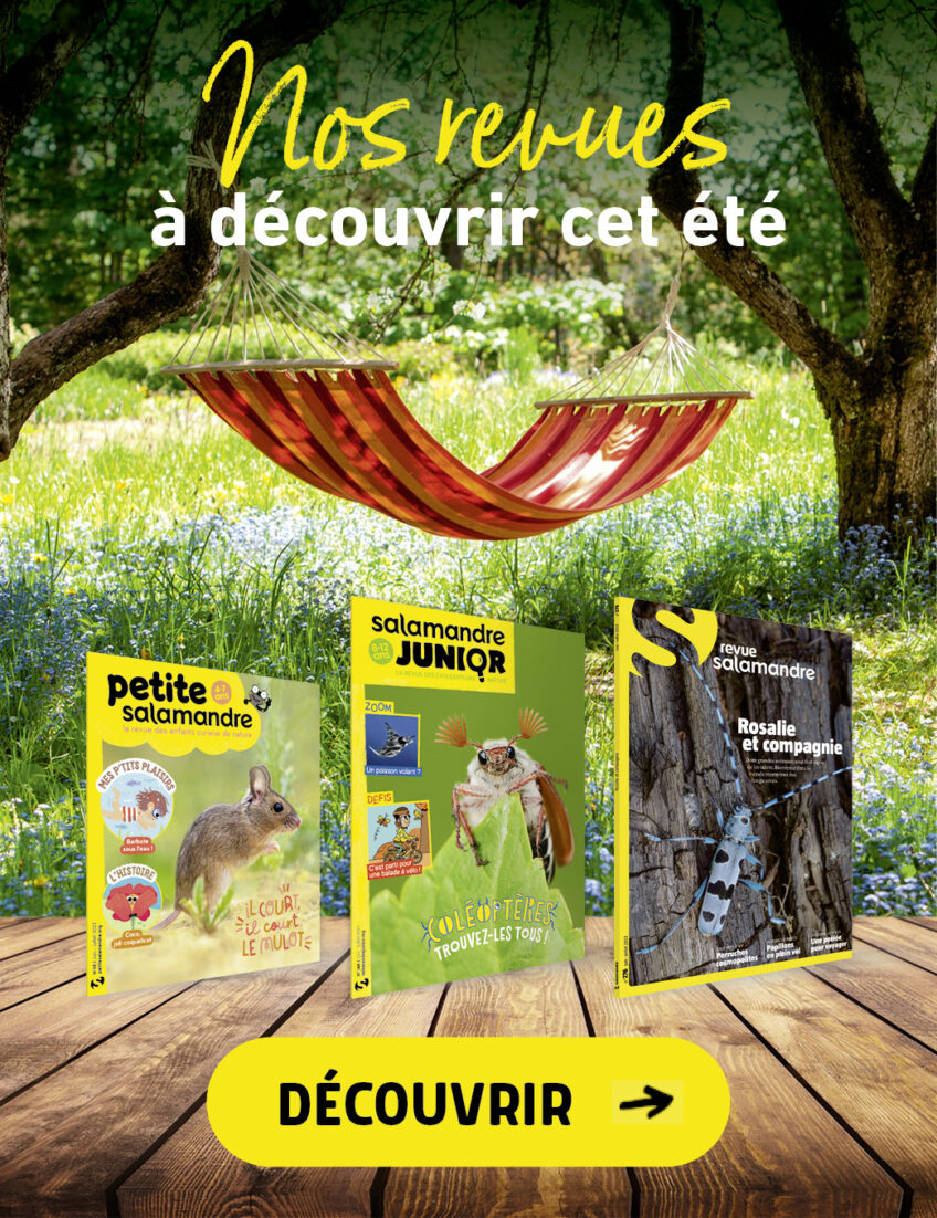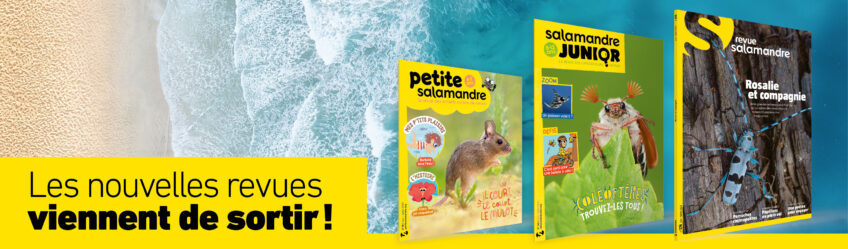 En ce mois de juin 2023 ensoleillé, la Salamandre vient vous rafraîchir avec ses 3 revues nature pour tous les âges. Les insectes ailés sont à l'honneur avec un numéro de la Revue Salamandre consacré aux longicornes et la Salamandre Junior aux coléoptères. La Petite Salamandre devra courir vite pour analyser sous toutes ses coutures le petit mulot qui se faufile dans les branches.