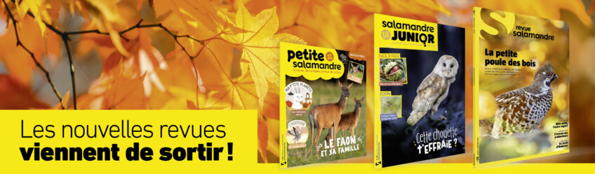 Célébrez l'arrivée de l'automne avec nos 3 revues captivantes pour tous les âges ! Dans la Revue Salamandre, explorez la vie secrète de la gélinotte des bois, une aventure au cœur des forêts sauvages du Jura. Avec la Salamandre Junior, les enfants de 8-12 ans découvriront les mystères nocturnes de la chouette effraie. Pour les plus jeunes, la Petite Salamandre dévoile les premiers pas du faon, entouré de sa famille.