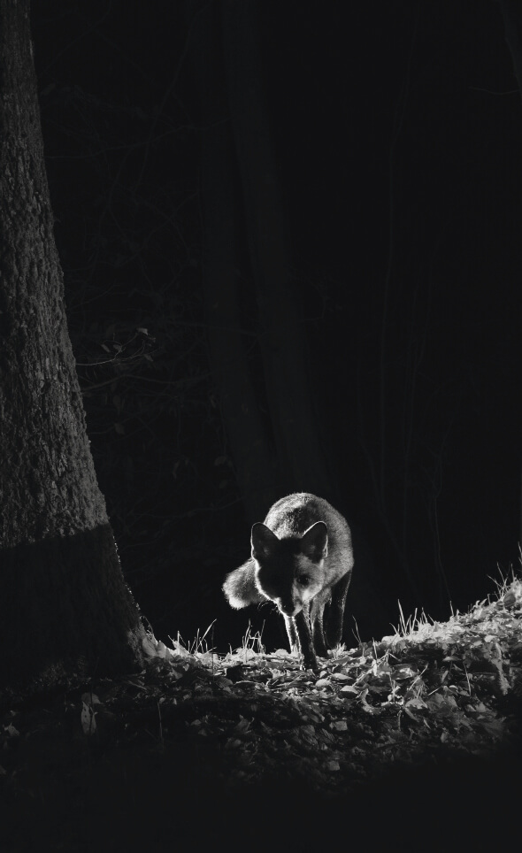 « Quand l’homme dort, les souris dansent. Mais elles ne sont pas les seules. Il y a aussi la genette, la martre, le chevreuil, le renard ou la loutre. Quel dommage que la vie de tous ces noctambules nous soit inaccessible. N’y aurait-il pas un moyen de les voir sans les déranger ? Serait-il possible d’immortaliser leur ronde sauvage ? Et si je bricolais mes boîtiers photographiques, que j’éclairais les animaux sauvages avec des spots infrarouges? Cela me permettrait de les saisir avec une lumière invisible qui ne devrait pas les déranger... »