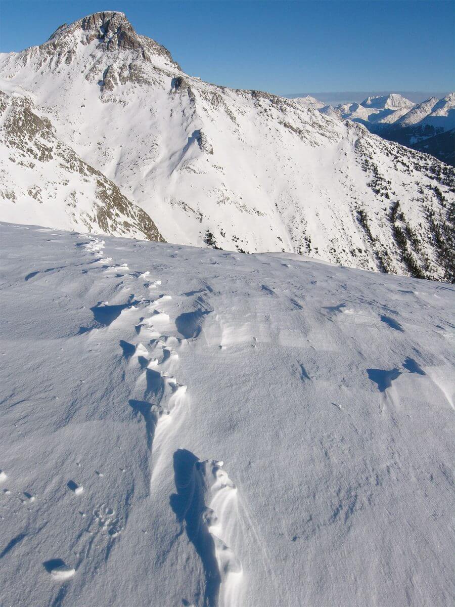 En ce début d’hiver, les bêtes ont réduit leurs mouvements au strict minimum. Même les bouquetins les plus valeureux ont renoncé à courir de harde en harde. Ils occupent une citadelle rocheuse avec des groupes de femelles suitées par leurs jeunes. Entre les pierres incrustées de lichens, on voit leurs traces, leurs crottes rondes, on sent leurs odeurs fortes. Il y a là suffisamment d’herbes sèches dénudées par le vent. Alors, à quoi bon courir la montagne quand la neige est si épaisse ?