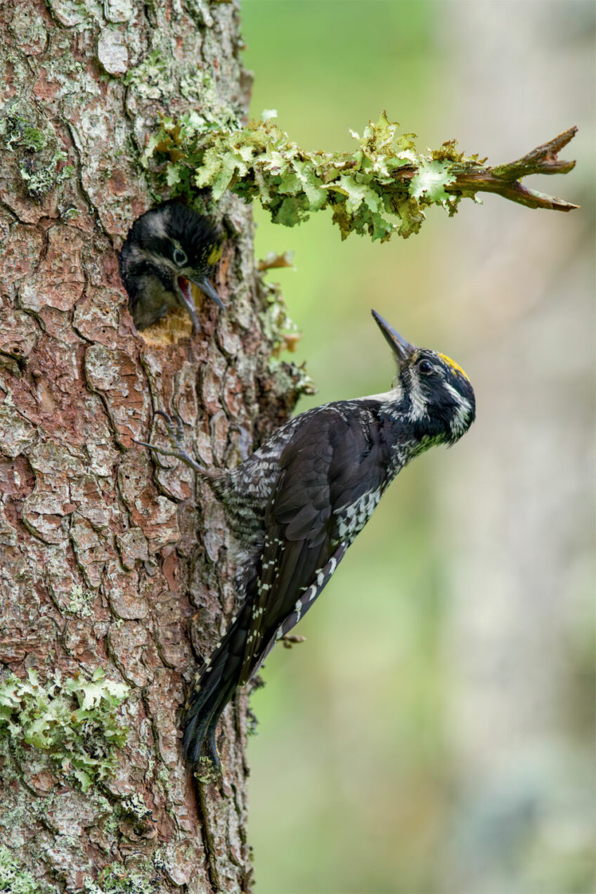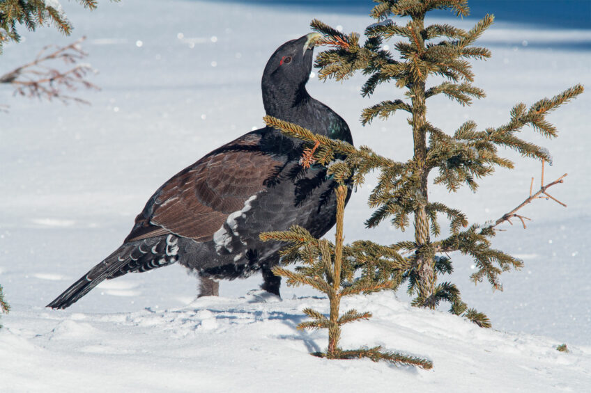 Le gras, c’est la vie ? Oh oui, répondraient les amateurs de graines d’épicéa. Chaque gourmet a développé sa technique pour les extirper de leur cône blindé. L’écureuil fait tourner la pive entre ses mains à mesure qu’il ronge frénétiquement les écailles pour accéder à la récompense. Mulots et campagnols font de même, mais de manière bien plus minutieuse et patiente. Le pic épeiche coince les cônes dans un repli d’écorce pour les marteler. Le bec-croisé est quant à lui passé maître en la matière. L’oiseau coloré glisse ses mandibules asymétriques sous les écailles et les soulève par un mouvement de levier afin d’extraire son repas avec sa langue. Grâce à cette ressource alimentaire parfois abondante toute l’année, il peut nicher même au cœur de l’hiver !