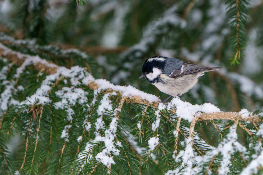 Dans un sapin, tout sert bien ! Le toit d’aiguilles offre un refuge aux animaux contre les intempéries ou les regards. Les paquets de neige qui glissent régulièrement des frondaisons cassent la continuité des couches neigeuses et freinent ainsi le départ des avalanches. À une autre échelle, chaque pli entre les aiguilles peut abriter de petits invertébrés… qui feront le bonheur de certains passereaux inféodés aux résineux, tels le roitelet huppé ou la mésange noire. Les troncs sont quant à eux le terrain de chantier du pic épeiche ou du pic tridactyle pour y forer leurs cavités... qui seront utilisées par la chouette chevêchette. N’oublions pas l’écorce, support d’innombrables mousses et lichens. Enfin, le tapis d’aiguilles qui peine à se décomposer au sol est le matériau de construction favori des fourmis des bois pour ériger leurs gigantesques dômes.