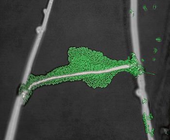 Est-ce que le monde vous paraît vaste ? Alors imaginez ce que doit ressentir une bactérie d’un dixième de millimètre ! A son échelle, un sol forestier ressemble à un gigantesque univers fait de lacs souterrains, de bulles d’air, d’immenses déserts et d’obstacles infranchissables. Pour ce minuscule organisme, une migration de 2 m correspond, pour un humain, à un voyage à pied de la Terre à la Lune. De plus, comme la plupart des colonies bactériennes dépendent fortement de l’eau, elles ne peuvent s’éloigner de leur oasis. Dans ces conditions, toute expédition est délicate, voire impensable. Pour survivre, les bactéries doivent pourtant sans cesse trouver de nouvelles sources de nourriture. Alors comment font-elles ? Eh bien elles prennent l’autoroute, comme vous.