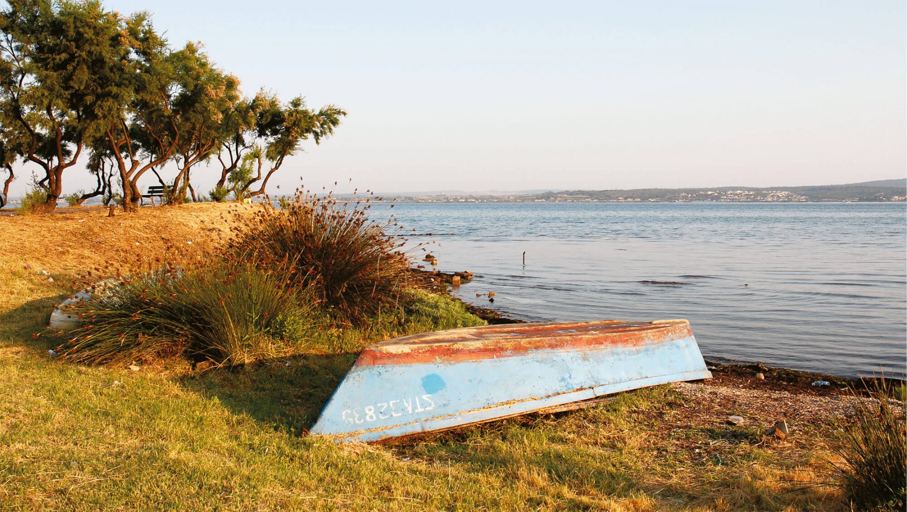De ces collines, l'envie est grande de rejoindre la rive. Une halte avec pour horizon l'étendue bleue et les damiers de tables ostréicoles. Une rêverie, et nous voilà au bord de l'eau. A la surface, des picotements comme des gouttes de pluie sorties des profondeurs : ce sont les bulles des nombreux mulets et des dernières daurades qui n’ont pas encore rejoint la haute mer après un séjour reproductif dans l'étang.
