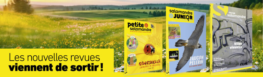 La Salamandre vous accompagne ce printemps avec 3 sujets passionnants pour tous les âges ! Les petits curieux de nature de 4 à 7 ans vivront un festival de couleurs avec la belle coccinelle, pendant que les 8-12 ans suivront les aventures à haute vitesse du faucon pèlerin. La Revue Salamandre invitera ses lecteurs à prendre un peu de temps dans la frénésie des villes pour y découvrir une nature pourtant bien présente.