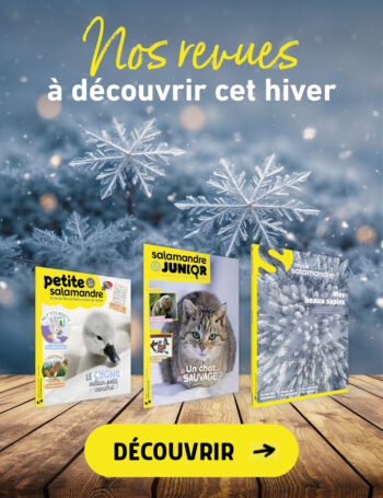 Nos 3 revues nature viennent réchauffer vos cœurs en cette fin d'année 2023 ! La Revue Salamandre porte un toast à nos deux rois des forêts, les sapins et épicéas. Dans la Salamandre Junior, les enfants de 8-12 ans partiront sur les traces d'un matou pas commode, le chat sauvage. Pour les plus jeunes, la Petite Salamandre raconte la vie du petit cygne, son duvet gris frissonnant à son majestueux plumage blanc.