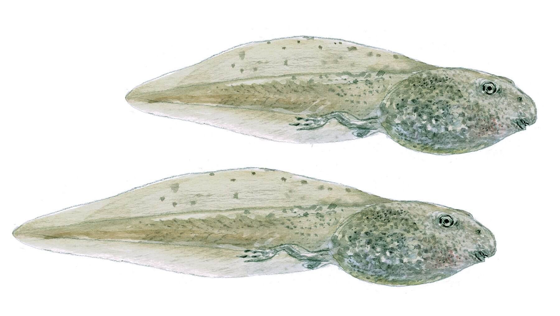 Au moment de son éclosion, le jeune têtard est incapable de se nourrir. Il grandit pourtant à vive allure parce que la proportion d’eau dans ses cellules passe de 50% à 80% en 48 heures. Pendant ce temps, la tête s’arrondit, la bouche et l’intestin se creusent, la queue s’allonge. Fixé par une glande adhésive sur l’enveloppe de l’œuf ou sur une plante aquatique, il attend le début du festin.