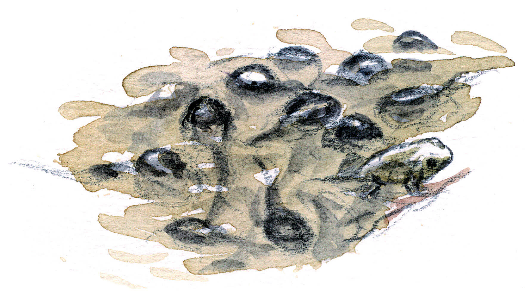 Le temps presse : le point d’eau peut s’assécher à tout instant. Le têtard a un développement très rapide déterminé par la température de l’eau. Au matin, tous migrent du fond de la mare où ils ont passé la nuit vers les berges. Ils s'y rassemblent à faible profondeur. Les taches sombres ainsi formées agissent comme des panneaux solaires qui accélèrent leur développement. Plus l’environnement est frais, plus les têtards restent noirs en grandissant.