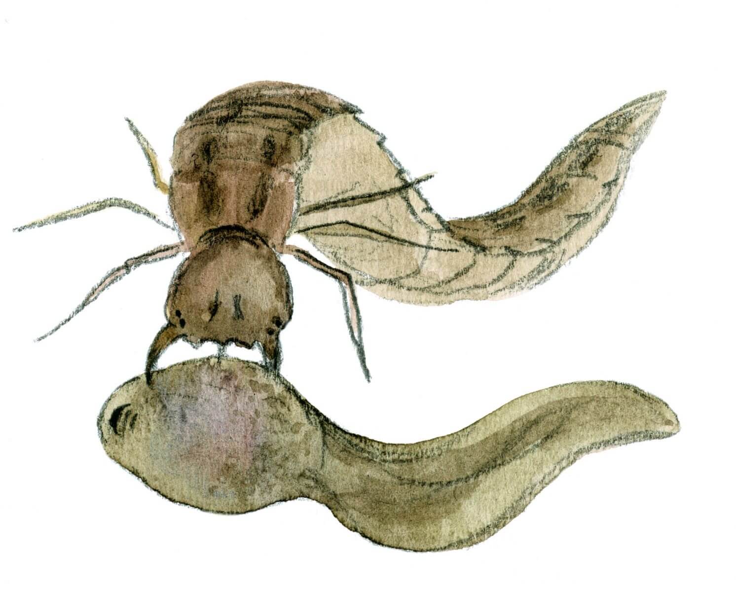 Dans un plan d'eau sans prédateur, les têtards se développent tous de la même manière. Si on déplace une partie d'entre eux dans un récipient qui a contenu auparavant des larves de libellules, l'odeur résiduelle du prédateur suffit à stimuler en quelques heures la croissance de leur queue au détriment de celle du reste du corps. Les voilà équipés d'un véritable turbo pour nager plus vite. Et en même temps d'une espèce de leurre qui détourne l'attention de leur tête et peut se déchirer sans conséquences majeures.