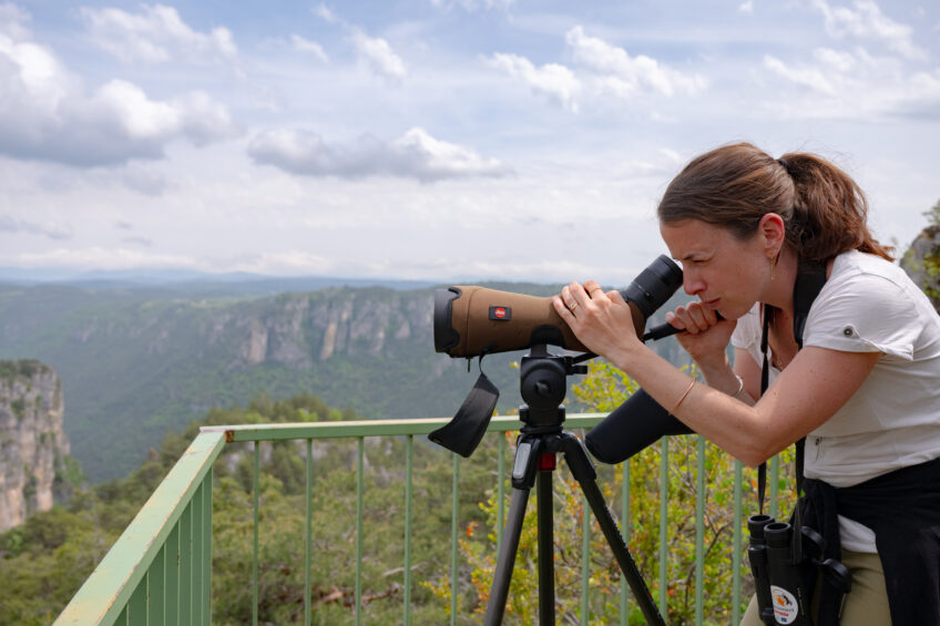 Alors que la longue-vue est justement pointée sur un nid en falaise, où un poussin domine la vallée, elle ajoute qu’« il y a encore beaucoup de place pour de nouvelles colonies ici. Les vautours qui s’aventurent au nord du Massif central ne traduisent pas une surpopulation, ils prospectent naturellement au-delà de leur territoire pour se nourrir ».